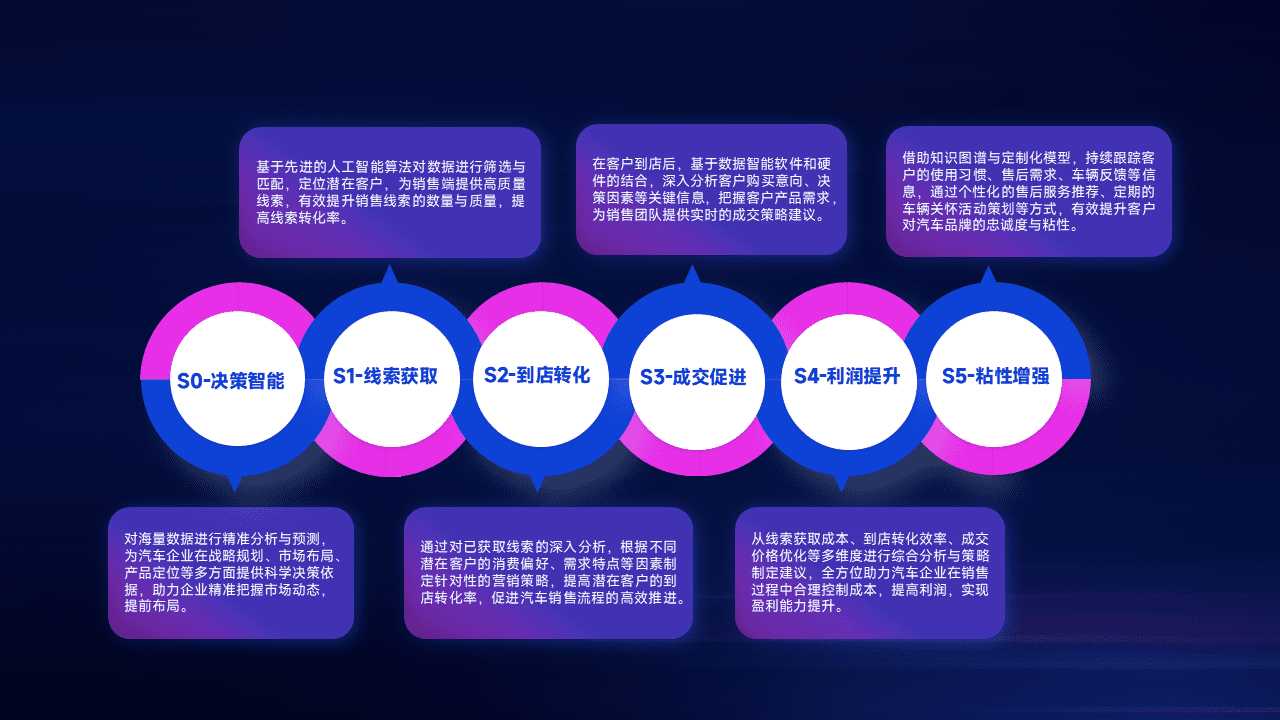 通过拓宽潜在客户来源、、、、优化线索分配并提高到店转化率,,,,以增强销售效率。。同时,,,,利用线索数据不断优化分析模型,,,有效提升转化率,,扩大营销影响力。。